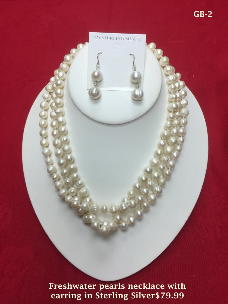 Elegant and timeless, this freshwater pearl jewelry set adds a classic touch to any outfit. Featuring lustrous pearls beautifully arranged in a layered necklace design, this set is paired with matching drop earrings crafted in sterling silver.