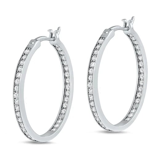 Channel Set Inside/Outside CZ EarringsThickness: 2.5 mmAvailable Diameters: 8 - 40 mmMetal Material: Sterling Silver